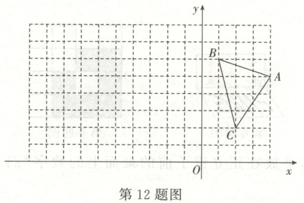 12. 如图,在由边长为 $ 1 $ 个单位长度的小正方形组成的网格中建立平面直角坐标系 $ xOy $,格点 $ A $,$ B $,$ C $ 的坐标分别为 $ (4,5) $,$ (1,6) $,$ (2,2) $。