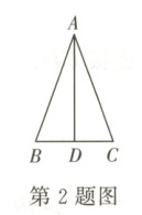 2. 如图,在$\triangle ABC$中,$AB = AC$,$D$为 $BC$ 中点.若$\angle BAD = 20^{\circ}$,则$\angle C$的度数为 (