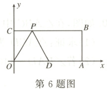 6. 如图,在平面直角坐标系中,长方形 $OABC$ 的顶点 $A$,$C$ 的坐标分别为$(10,0)$,$(0,4)$,点 $D$ 是 $OA$ 的中点,点 $P$ 在 $BC$ 上运动,当 $OP = PD$ 时,点 $P$ 的坐标是 (