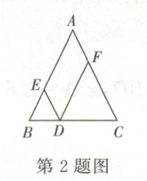 2. 如图,在$\triangle ABC$中,$AB = AC = 8$,点$D$,$E$,$F$分别在边$BC$,$AB$,$AC$上。若$DE// AC$,$DF// AB$,则四边形$AEDF$的周长是(
