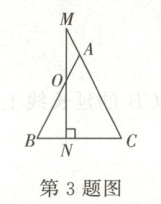 3. 如图,在$\triangle ABC$中,$AB = AC$,点$M$在$CA$的延长线上,$MN\perp BC$于点$N$,交$AB$于点$O$。若$AO = 3$,$BO = 4$,则$MC$的长度为(