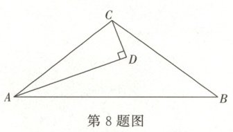 8. 如图,$D$为$\triangle ABC$内一点,$AD\perp CD$,$AD$平分$\angle CAB$,且$\angle DCB = \angle B$。如果$AB = 10$,$AC = 6$,那么$CD =$
