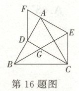 16. (2025·福建)如图,$\triangle ABC$ 是等边三角形,$D$ 是 $AB$ 的中点,$CE\perp BC$,垂足为 $C$,$EF$ 是由 $CD$ 沿 $CE$ 方向平移得到的。已知 $EF$ 过点 $A$,$BE$ 交 $CD$ 于点 $G$。