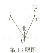 13. 如图,一艘轮船由海平面上$C$地出发向南偏西$25^{\circ}$的方向行驶$120$海里到达$B$地,再由$B$地向北偏西$35^{\circ}$的方向行驶$120$海里到达$A$地,则$A$,$C$两地相距