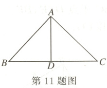 11. 如图,在$\triangle ABC$中,$AD$平分$\angle BAC$,交$BC$于点$D$,请你添加一个条件,可以判定$\triangle ABC$是等腰三角形,你添加的条件是