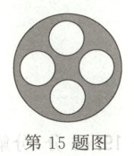15. 如图所示的圆形工件,大圆的半径$R$为 65.4 mm,四个小圆的半径$r$均为 17.3 mm,则图中阴影部分的面积是
