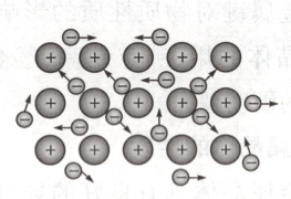 【例题1】下图是金属晶体内部的电子气理论示意图。仔细观察并用该理论解释金属导电的原因是(