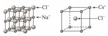 (2)提示 a.离子键的强弱与离子半径有关,一般情况下,离子半径越小,离子键越强;b.离子晶体的熔、沸点和硬度与离子键的强弱有关,一般情况下,离子键越强,离子晶体的熔、沸点越高,硬度越大;c.因为$Cs^+$的半径比$Na^+$半径大,所以NaCl中的离子键比CsCl中的离子键强度大,NaCl的熔、沸点比CsCl的熔、沸点高。