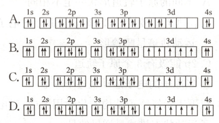 8. 已知锰的核电荷数为 25,以下是一些同学绘制的基态锰原子的轨道表示式,其中最能准确表示基态锰原子核外电子运动状态的是( )。