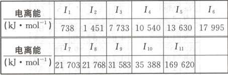11)表示失去第n个电子的电离能]。