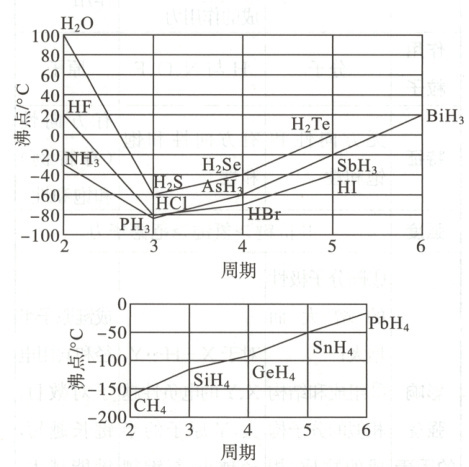 2. 在第ⅥA族元素的氢化物中,为什么H₂O的相对分子质量小于同主族其他元素的氢化物,但沸点却比其他元素的氢化物的沸点高?