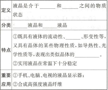 3.液态 晶态 热致 溶致 ①黏度 各向