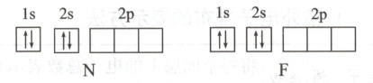 基态原子中,填入简并轨道的电子总是先_________,且自旋平行。如氮原子、氟原子的电子排布图: