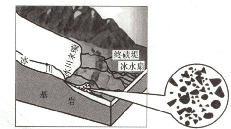 终碛堤是冰川挟带物堆积在冰川末端形成的堤状堆积体。当冰川融水流过终碛堤后,冰水挟带大量碎屑物质堆积成扇形堆积体,称为冰水扇。下图示意终碛堤及冰水扇。据此完成1~2题。