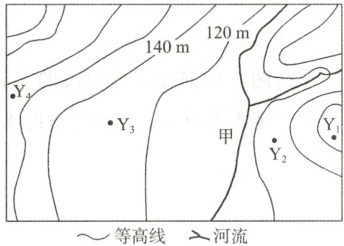 某地质考察队对右图所示区域进行地质研究,在Y₁、Y₂、Y₃、Y₄处分别钻孔至地下同一水平面。在该水平面上的Y₂、Y₃处取得相同的砂岩,Y₁、Y₄处取得相同的砾岩,且砂岩的年代比砾岩老。据此完成7~8题。