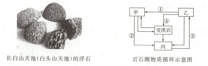 浮石,主要产于吉林省东南部长白山天池(白头山天池)附近。该石多呈白、灰白、乳白、浅黄等色,多孔而质轻,能浮于水面。读图,完成1~2题。