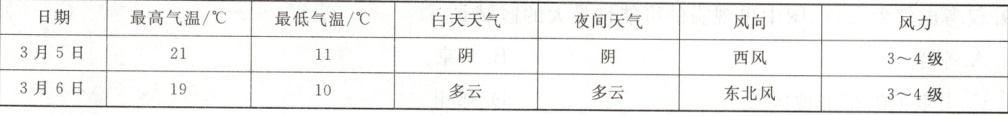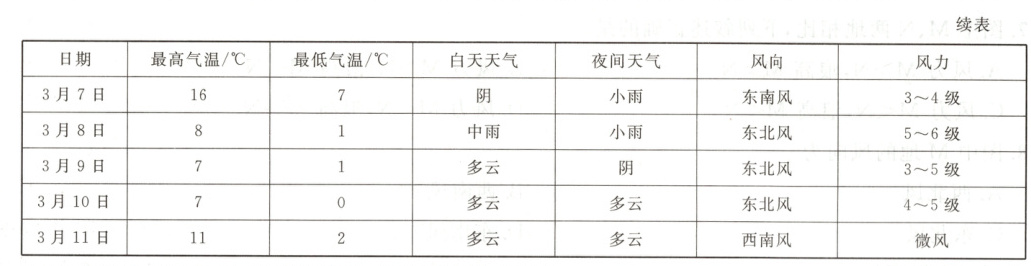 下表为某市某年3月5日至11日天气信息统计表。读表,完成3~4题。