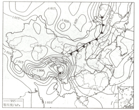 (3)据图推测,A天气系统过境时给北京市带来的灾害性天气是