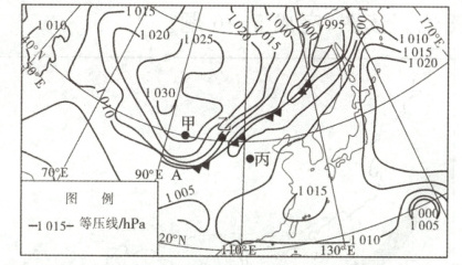 10. 下图为某年4月30日20时亚洲局部地区海平面气压分布图。读图,完成下列各题。