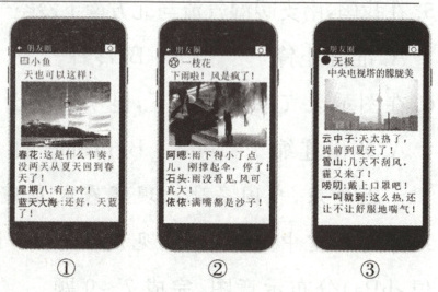 。北京市在该天气系统过境前、过境时、过境后,社交软件中热议的内容(右图)依次是③