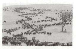 每年6—9月,东非的塞伦盖蒂草原保护区的青草被逐渐啃食殆尽,食物变得越来越少。为了获得食物,草原上的动物会长途跋涉3000多千米北上,上演地球上最壮观的动物大迁徙场面。数百万动物大军碾过茫茫大草原,场面壮观,声势浩大。当到达终点之后,由于气候的变化,短短两三个月之后,这支食草野生动物组成的远征大军将再次不辞辛苦地追寻青草返回塞伦盖蒂。