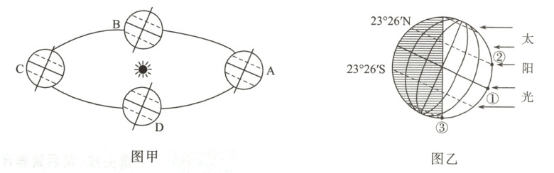 10. 读地球公转示意图(图甲)和太阳光照图(图乙),完成下列各题。