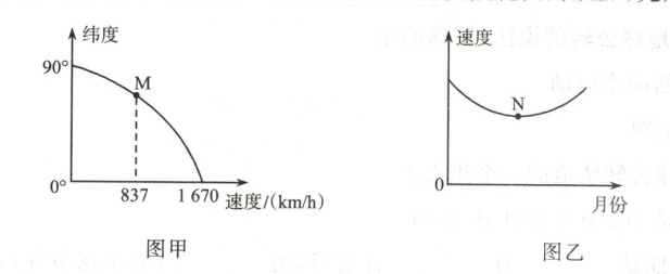 6. 图甲中M点的纬度、图乙中N点的月份分别是(