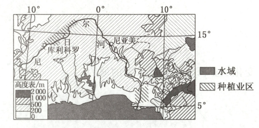读尼日尔河流经地区示意图,完成 5~7 题。