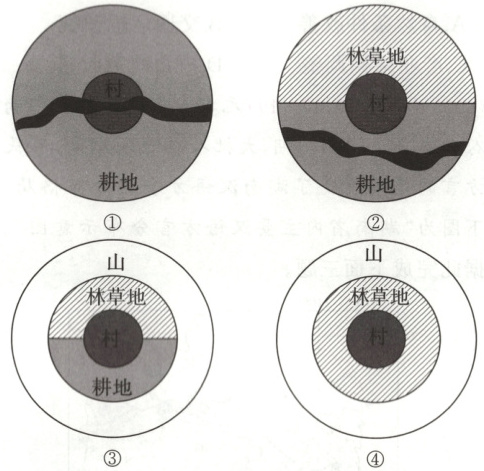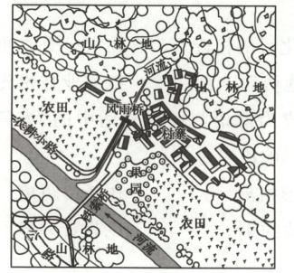 (2023 江苏,15,2 分)古村落的研究与保护既有利于传统文化的传承,又有利于我国乡村振兴战略的实施。下图为“我国中部山区某传统村寨土地利用结构示意图”。据此回答下题。
