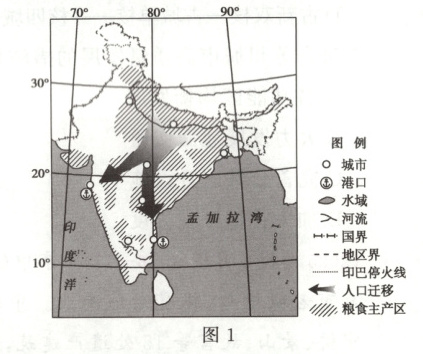 材料一 2021年,印度人口13.9亿,年龄结构较为年轻。该国城镇化水平34.5%,低于亚洲主要发展中国家,近年来国内人口出现跨区域迁移。该国粮食生产基本自给,是世界主要粮食出口国,但粮食出口常受政策限制。
