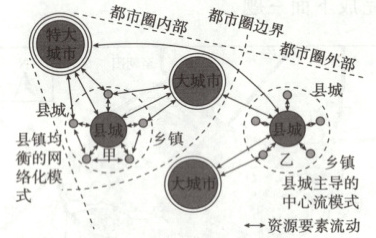 2 B 网络化模式强调县镇均衡,如果县城强化要素集聚可能会打破均衡,不利于整体发展;网络化模式中强化大城市辐射效应,能带动县城和乡镇发展,促进资源要素更合理地流动和配置,有利于长三角都市圈新型城镇化发展,B项正确;中心流模式中县城是主导,鼓励人口向外流,不利于县城发展,也不利于新型城镇化发展;中心流模式中乡镇在合理范围内的要素流动是正常的,避免要素分散过于绝对,不利于资源的优化配置。