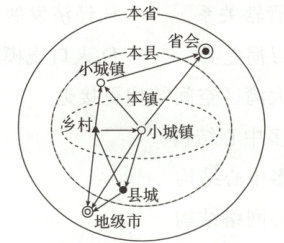 (2025镇江期初,20—22)“就近城镇化”指农业转移人口迁移到户籍登记地所在省份的城镇就业和居住的城镇化过程。依据农业转移人口的空间迁移尺度,可将就近城镇化分为本镇城镇化、本县城镇化和本省城镇化3个类型。下图为“就近城镇化示意图”。据此回答下面三题。