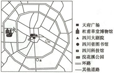 (2025 盐城中学3月检测,18—20)在成都市建成区快速扩张过程中,四川省博物馆从a处迁址到b处,成都市博物馆从c处迁址到d处(下图),2023年,成都市提出“博物馆倍增计划”,打造博物馆等级体系。据此完成下面三题。
