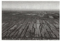 (2025 南通二模,14—16)荷兰于 11 世纪组织了大规模的泥炭湿地开垦,划定泥炭圩田地块标准为 1 260×110 米,道路和住宅多沿地块的短边修建。二战后,该国农业现代化进程加快,改变了传统乡村景观。下图为“荷兰典型泥炭圩田景观图”。据此完成下面三题。
