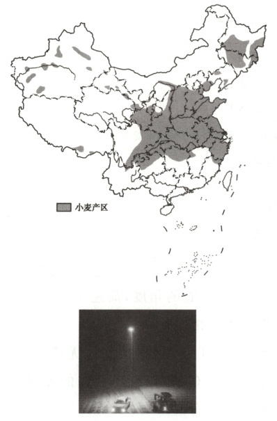 (2025 泰州期初,1—2)我国小麦以长城为界,分为冬小麦和春小麦。下图为我国小麦产区分布图和河南小麦抢收照片。据此完成下面两题。
