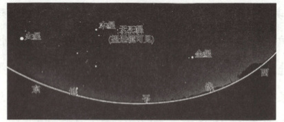 5. 5 日傍晚,观察者、金星与太阳三者的相对位置关系是 (