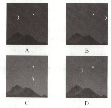 6. 下列四图中,最符合 6 日傍晚同一时刻金星伴月照片的是 (