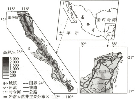 (2024北京,13,3分)下图示意下加利福尼亚半岛和尤卡坦半岛的位置。读图,回答下题。