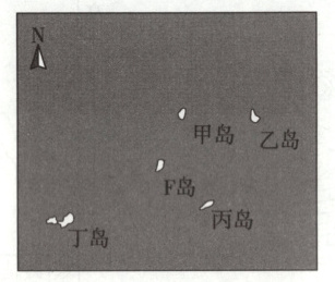 结合上题分析可知,该日太阳直射点约位于12°N,该岛位于12°N,则该日下午太阳位于西南、西北方位,因小明于当地下午乘船去往某岛屿观光,途中船上的旗杆影子多数时间指向行进方向,说明此时太阳应在西北方,日影在东南侧,图中唯有丙岛在F岛的东南方向,故C正确。