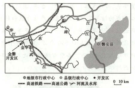 (3)金华市位于河流下游,夏季风下风向,磐安县的污染减轻能改善金华市的环境;(2分)带动金华市城镇化和相关产业的发展,拉动基础设施建设;(2分)为金华市提供优质农产品和旅游目的地,提升金华市民生活品质。(2分)