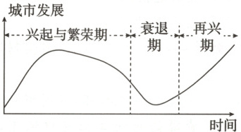 (1)说明“煤炭开采”在该城市不同发展阶段的作用。(6 分)