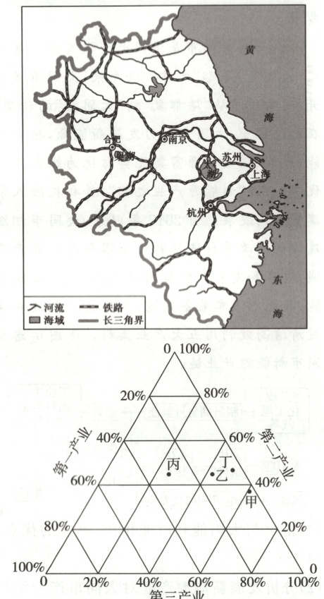 1 A 4个年份中,合肥市2020年的产业结构应该最优(即第一产业比重最低,第三产业比重最高)。四个点中“甲”所对应的第三产业比重最高,第一产业比重最低,符合产业结构不断优化的趋势。A项正确。