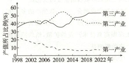 (1)与1998年相比,指出2022年重庆市产业结构的变化。(6分)