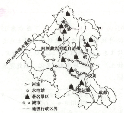(2)简析阿坝州在水电开发过程中遇到的主要不利自然条件。(4分)