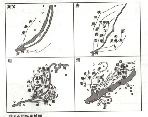 (2)说明宁夏古渠演变对灌区城镇分布与发展的影响。(4分)