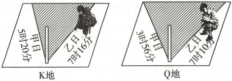 )A. 甲日日落地方时,K地比Q地大