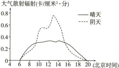 (2022浙江1月选考,24—25,6分)大气散射辐射的强弱和太阳高度、大气透明度有关。下图为我国某城市大气散射辐射日变化图。完成下面两题。
