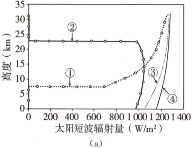 4. 这次探测结果显示,白昼期间气球接收到的太阳短波辐射量随高度增加而增多,是因为随高度增加 (
