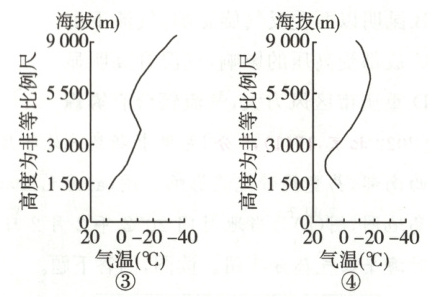 6 A 贵州中西部地区为亚热带季风气候,冬季近地面气温应在0℃以上;锋面雨雾出现在锋线附近,锋面以下为弱冷气团,锋面以上为暖湿气团,单一气团内气温随海拔升高而降低;锋面附近冷暖空气交汇,气温随海拔升高而升高。与上述描述相符的为①。故选A。