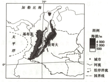 材料一 哥伦比亚地处南美洲西北部,是南美洲唯一同时濒临加勒比海与太平洋的国家,西部为狭窄的沿海平原,中部为科迪勒拉山系,东、南部分别属于奥里诺科平原和亚马孙平原。在西科迪勒拉山区,夏季常有气流越过山脉,快速下沉,形成“泻风”。